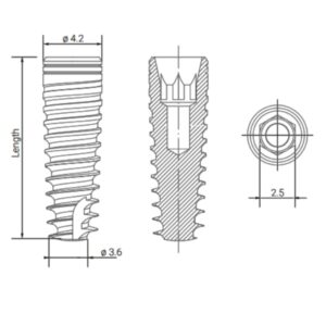 - Hình dạng thân implant hình nón phù hợp chính xác với hình dạng mũi khoan, giúp vừa khít với xương
